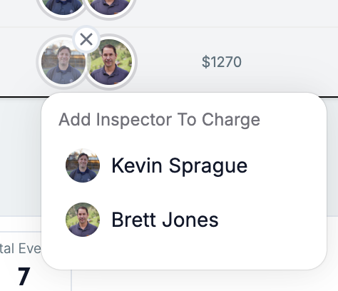 Each job has a split and the inspector can be assigned or unassigned to each service under a job.